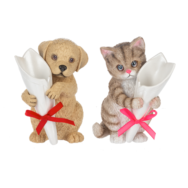 Give your blooms the cutest home ever with these delightful pet-themed bud vases! Featuring sweet puppy and kitten designs, these charming vessels are perfect for showcasing fresh flowers or displaying as standalone décor treasures. Ideal for pet lovers who want to add a touch of playful personality to their space, these vases make wonderful gifts for anyone who celebrates their furry friends. Pure paws-ome style!